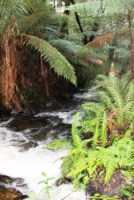 The pictures below are of the section heading out east from the Yuonga Road entry point. As for the Dee Road car park, this has great views and some limited picnic facilities. The trail is much the same as before but with some steeper sections where the aqueduct traverses around a spur. For beginners, this can be walked but are generally short in nature. The trail passes through tree ferns and large mountain ash country.