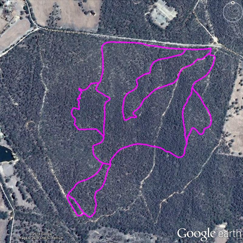 The Baco Trails at Castlemaine are located in the Walmer Forest Reserve to the west of town behind the bacon factory (hence the name). For the ride described below, I headed out on Daws Road and parked at the Centre and Border Track which is on the left as you head out of town.
