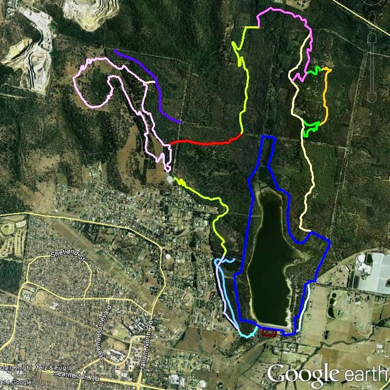 Clicking on the image below will take you through to the Lysterfield District Trail Riders map. This is more up to date than the Parks Victoria map as it shows the new Follow Me trail and the new Aneurysm trail. Upper Buckle Trail is the one shown in dark pink on the map below.