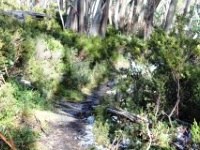 Muellers Track is an 800 metre length of single track running adjacent to the Maltese Cross T Bar (red trail on map above). It's a nice piece of single trail heading downhill all of the way through snow gums with minor rock obstacles along the way. Be aware walkers also use this trail so please pay due consideration when approaching.