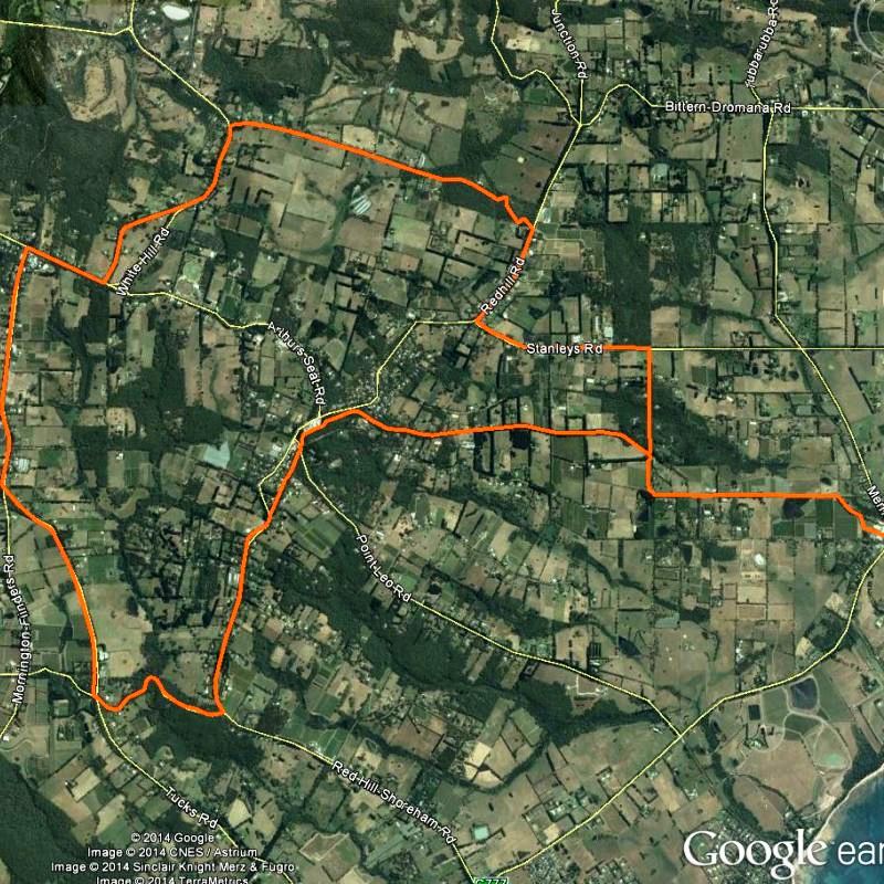 Pick up the short length of single trail on the left and then pick up the single trail on the right near Foxeys Hangout vineyard and follow it around into Mc Ilroys Road. This is a fun section of single track following the road reserve. It finishes up towards the flora reserve so follow the road out as required. Turn right at Red Hill Road and follow down to Stanleys Road.